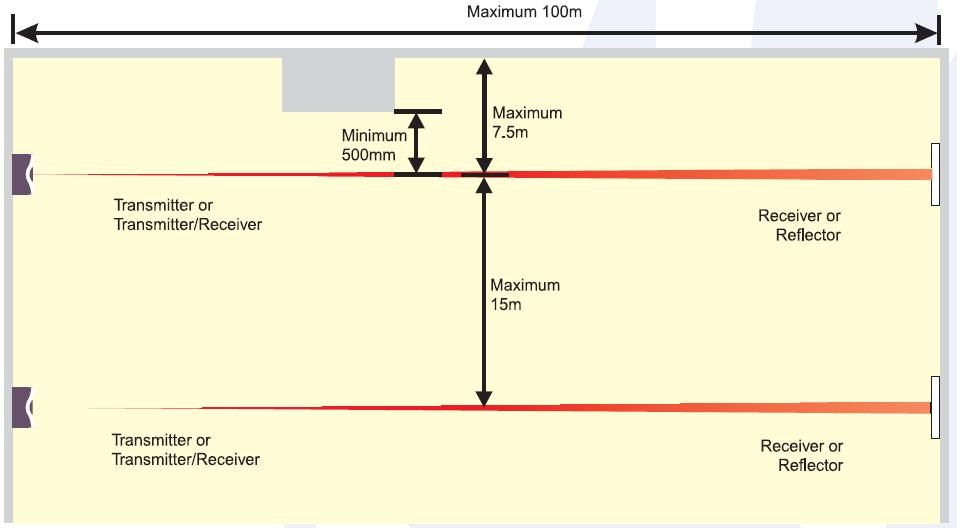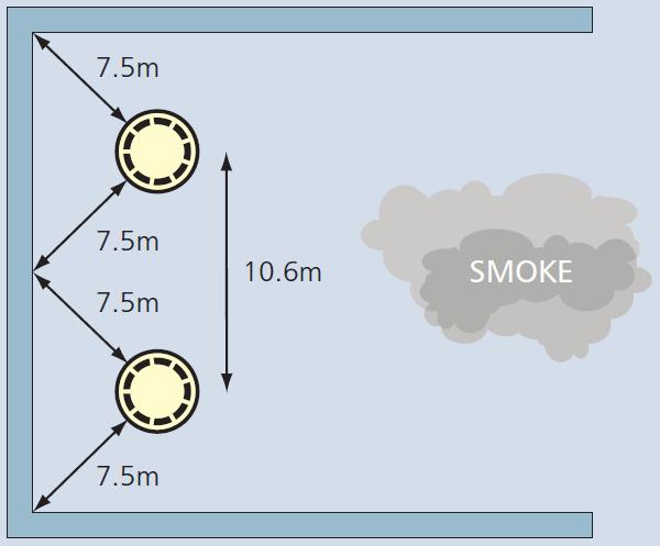 Bariere de fum - vedere laterala si de sus - scheme de amplasare pentru sisteme de alarma la incendiu