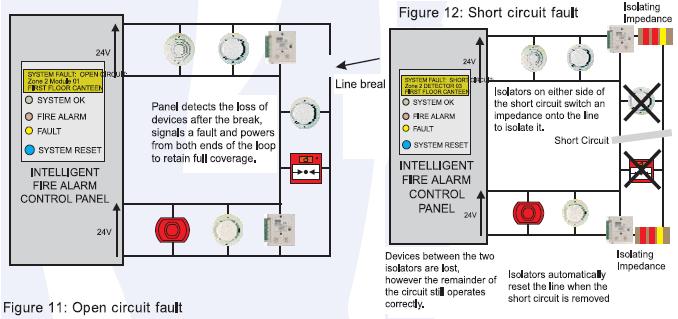 In caz de scurt circuit intre fire, sistemul de alarma antiincendiu este functional in cazul in care detectorii au izolator de scurt circuit integrat