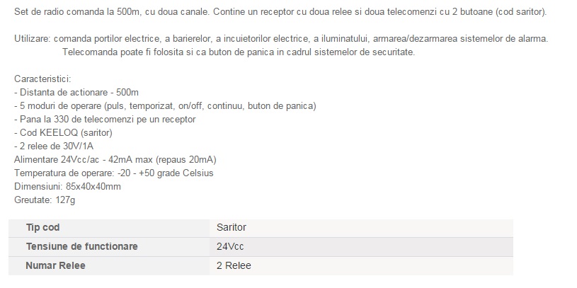 - Producator: Telecomenzi Radio Universale – Porți, Bariere, Control Acces