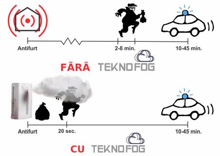 Un jaf dureaza in medie intre 2 si 8 minute. Fara o protectie adecvata, cu un sistem de ceata artificiala uscata, totul depinde de viteza de reactie a politiei sau firmei de paza si protectie. In cel mai bun caz timpul de reactie estimat este intre 10 si 45 minute. Sistemele de protecţie antiefracţie cu ceaţa artificiala reprezintă o nouă generatie de sisteme antiefracţie, active, care in multe tari ale lumii au inlocuit cu succes sistemele de protectie traditionale, pasive, cu efect limitat împotriva hotilor, datorita vulnerabilitaţilor unanim recunoscute..