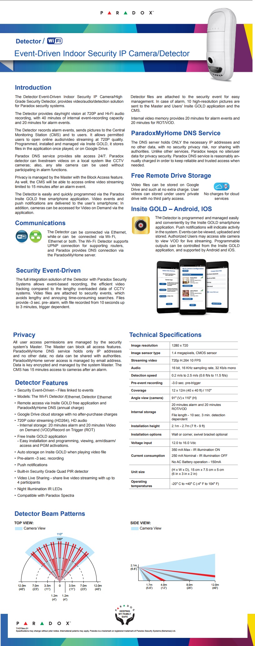 Este un detector cu un grad mare de securitate, care încorporeaza o cameră IP de interior, oferind o solutie de detectie/video/audio pentru sistemele de securitate Paradox. Se poate conecta radio (Wi-Fi), prin cablu Ethernet sau chiar prin amandoua.