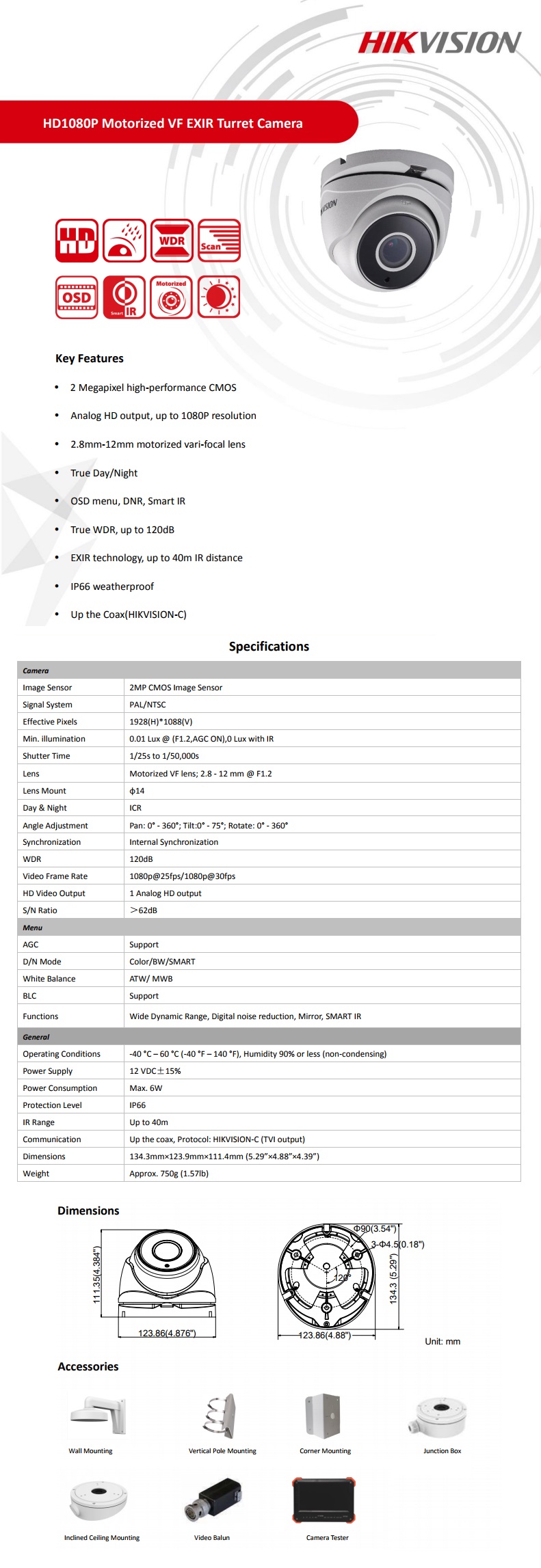 - Model: Camera Dome Turbo HD3.0 1080p Lentila 2.8-12mm Ir 40m Hikvision