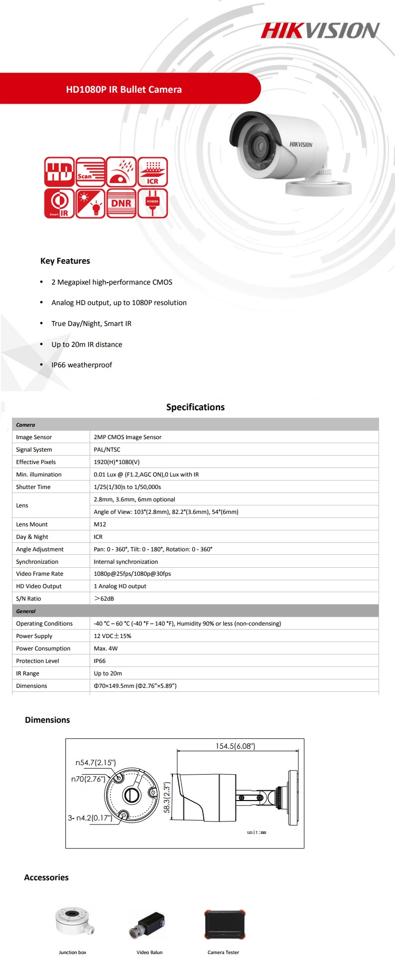 - Model: Bullet Exterior 1080p Ir 20m Lentila Fixa 2.8mm Hikvision mc