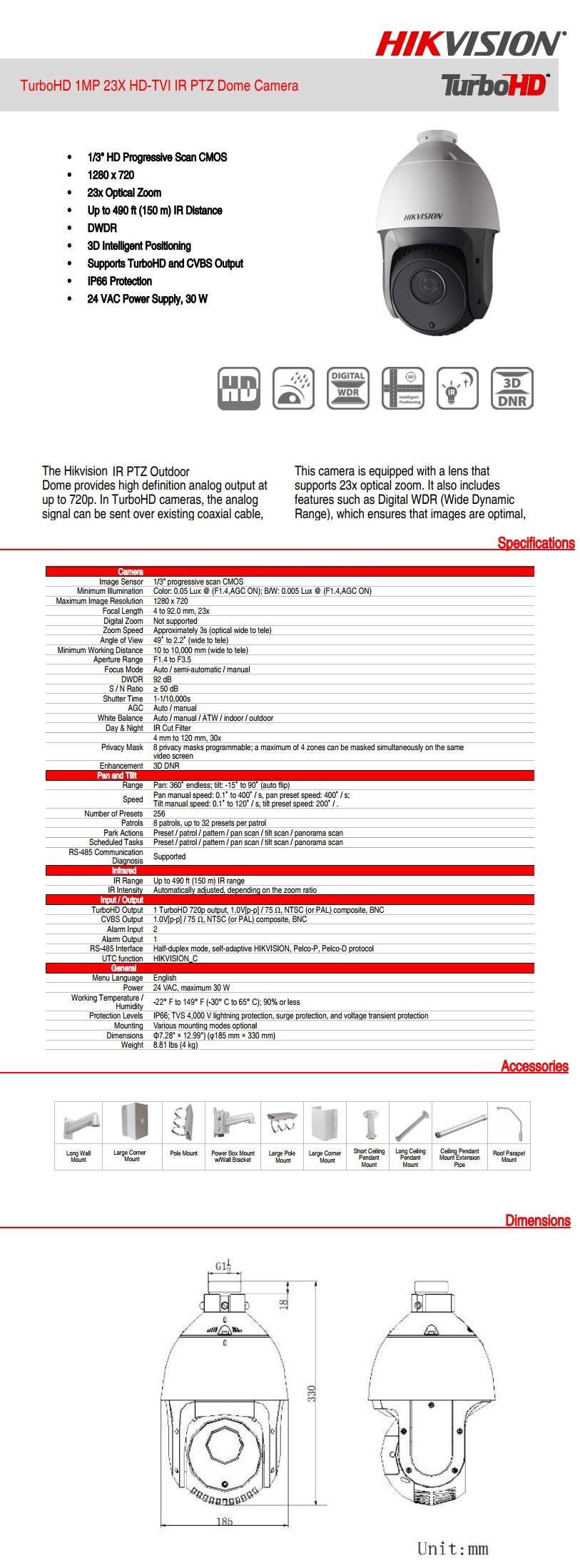 - Model: Speed Dome 720p Zoom 23x Ir 150m Lentila 4-92mm Hikvsion
